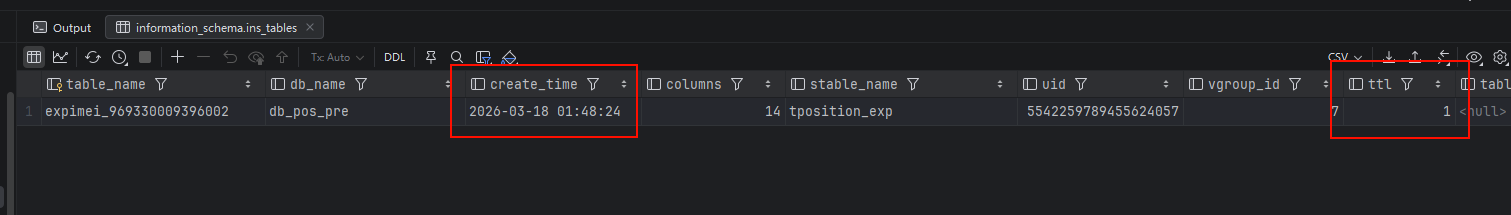 我的建表语句是这个 CREATE TABLE `message_864742050985433` USING `report_message` (`imei`) TAGS (“864742050985433”) TTL 1