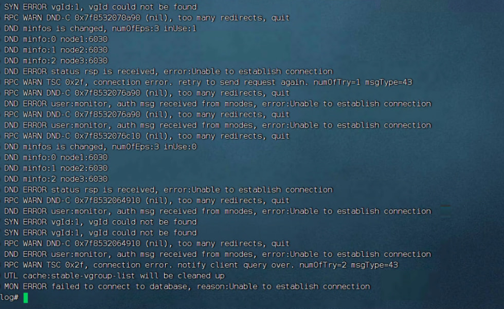 【遇到的问题:问题现象及影响】客户端登录不上,显示user:root, auth msg received from mnodes, error:Unable to establish connection。