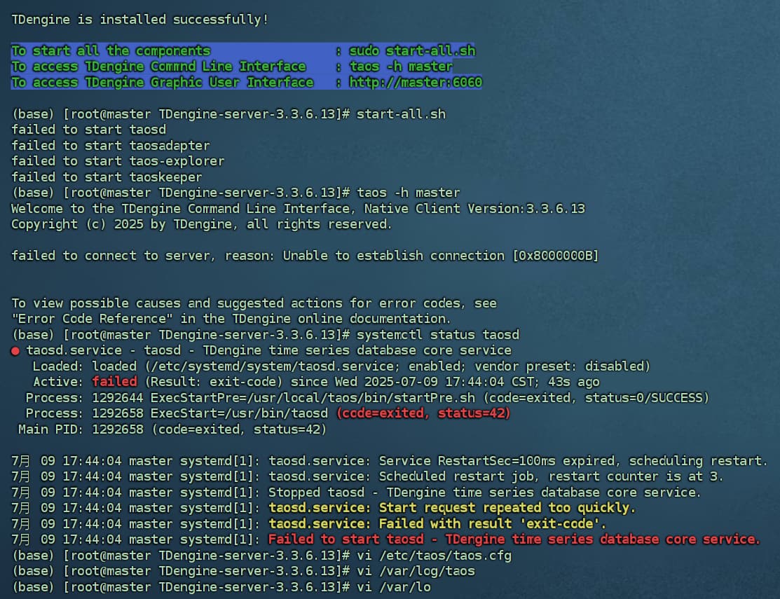 安装后启动失败