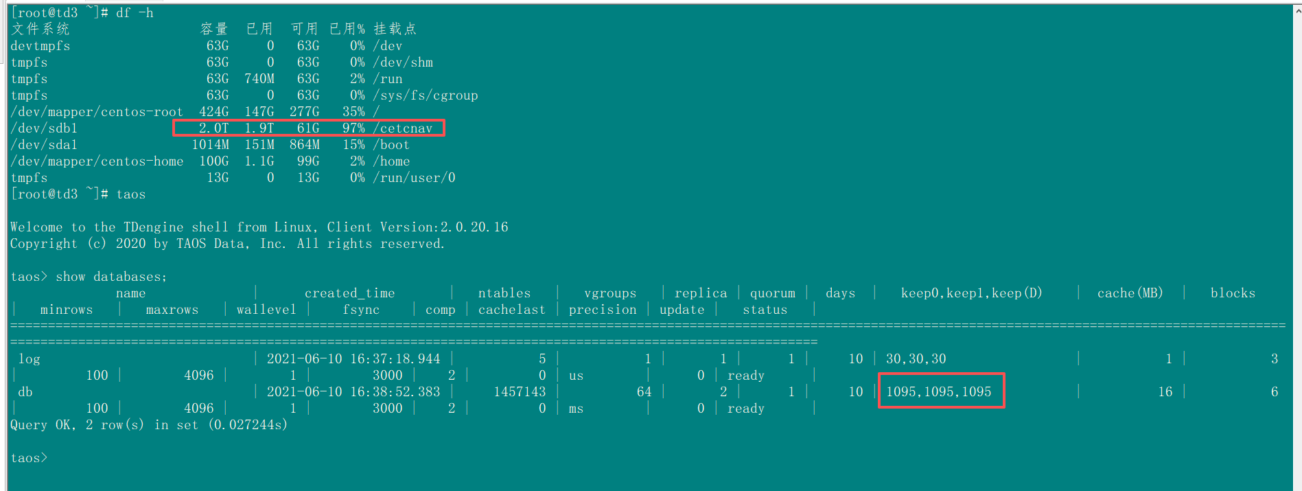 用select first(时间字段)这个方式查询,没有返回结果,但我直接用select * from查询前100条,最早看到有2021年的数据,但我已经将keep值改为1095了,应该只有23 24 25这三年的数据,不应该再有21和22年的数据了。