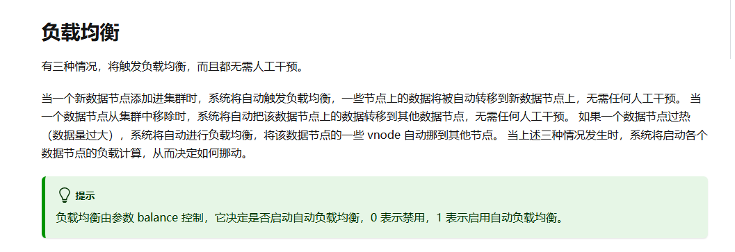 现在v3.x版本不支持自动负载均衡,需要人工来通过命令触发调整。